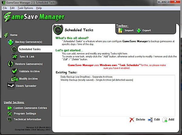 GameSave Manager is a freeware download, and requires a PC running Windows XP, Vista or 7.
